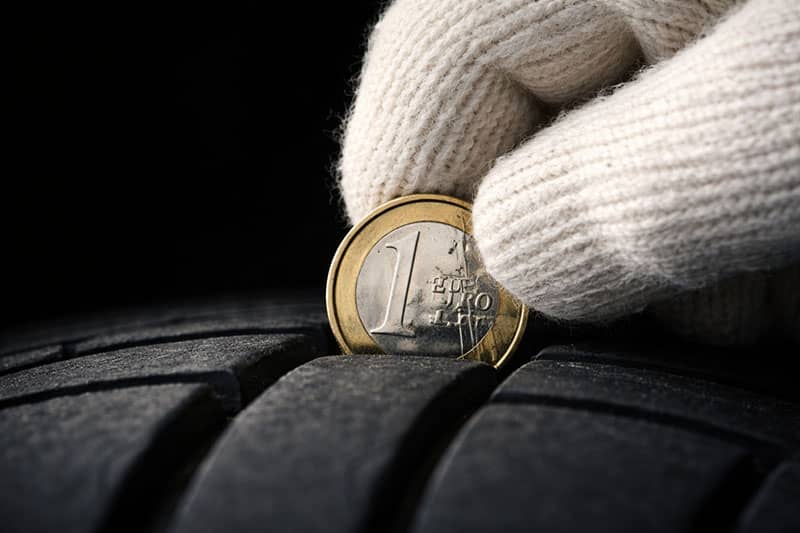 Insérez une pièce dans la rainure : Si vous voyez entièrement le bord alors le pneu est trop usé.